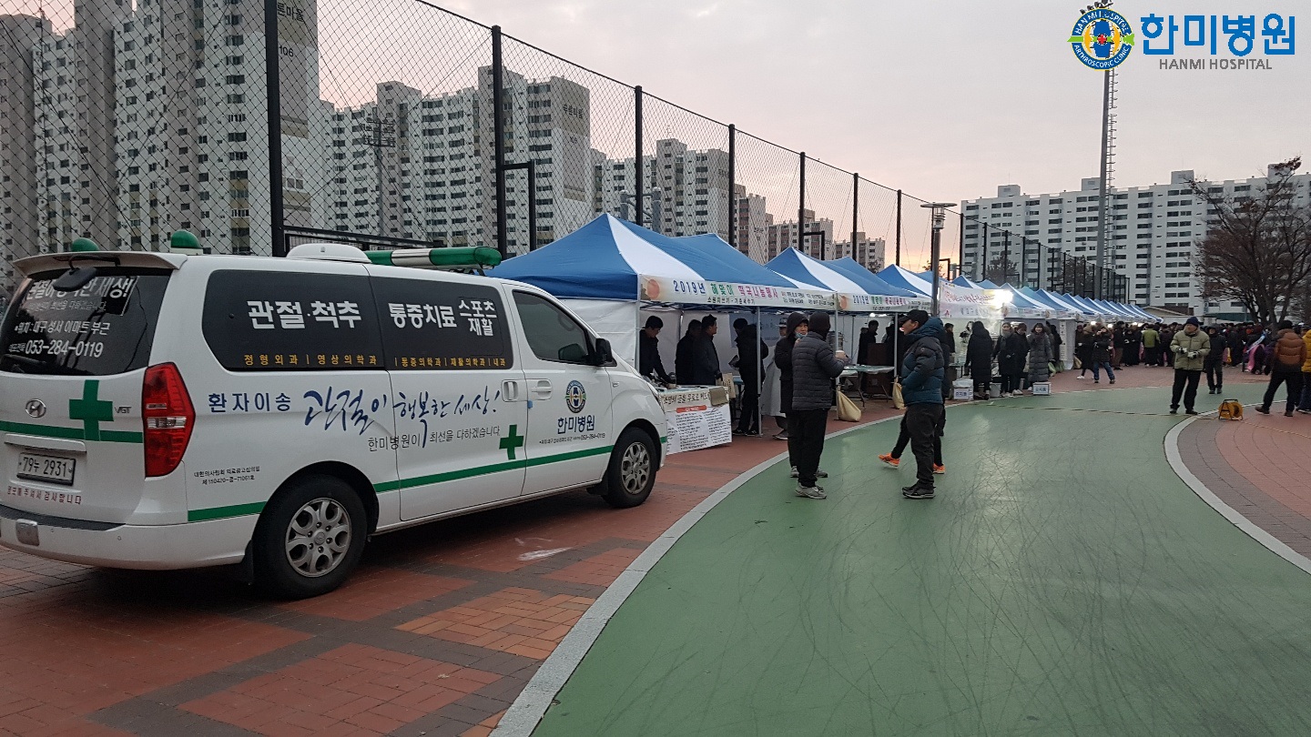 대구 성서 국민체육센터 광장 2019년 새해맞이 떡국나눔행사 대구정형외과 한미병원 의료지원