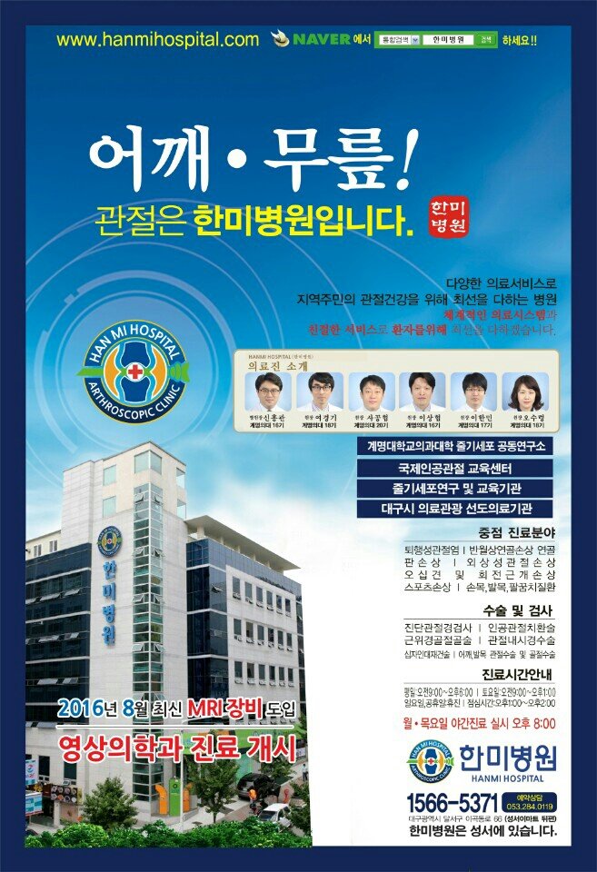 관절이 행복한 세상 대구정형외과 한미병원입니다.