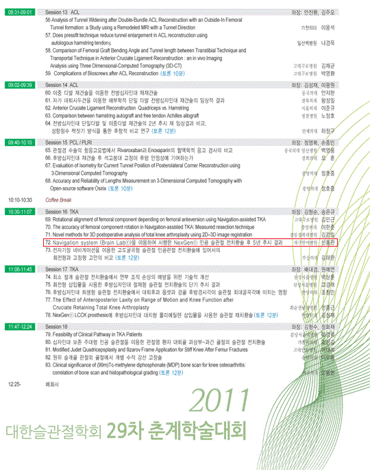 2010.10.14[대한정형외과학회 발표] 내측 반월상 연골판 후방 부착부 파열의 관절경적 견인 봉합술 후 5년 추시 결