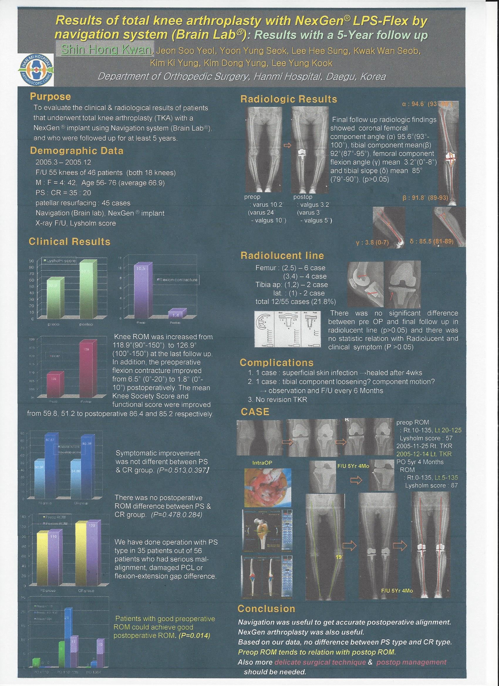 2012.4 논문발표[대한슬관절학회] KSRR - Results of total knee arthroplasty with Nexgen using navigation system