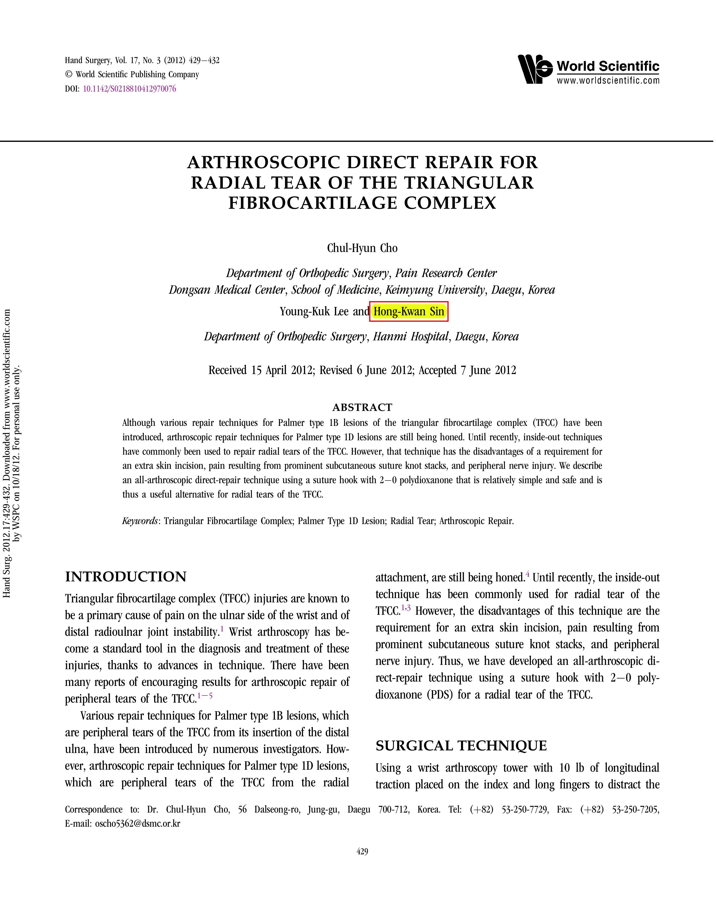 2012.10 논문발표[국제 학술지 Knee Surg Sports Traumatol Arthrosc] knee surg traumatol - SCI(E) - Efficacy of interscalene block after rotator cuff repair