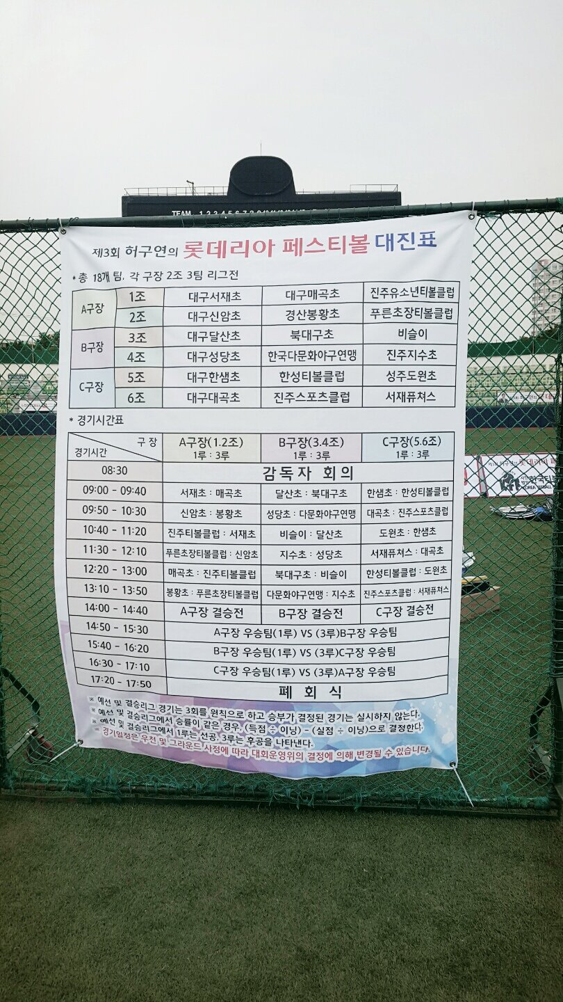 구.삼성홈구장인 시민운동장에서 허구연의 롯데리아 페스티볼 대회에 한미병원이 의료지원을 다녀 왔습니다. 이번 대회에서 우승팀은 일본으로 초청되어 한일전을 치른다고 합니다. |