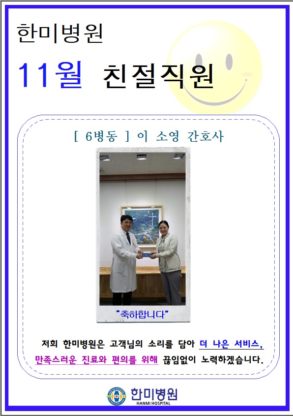 12월 한미병원 친절직원 선정(임상병리실 조은지 병리사)