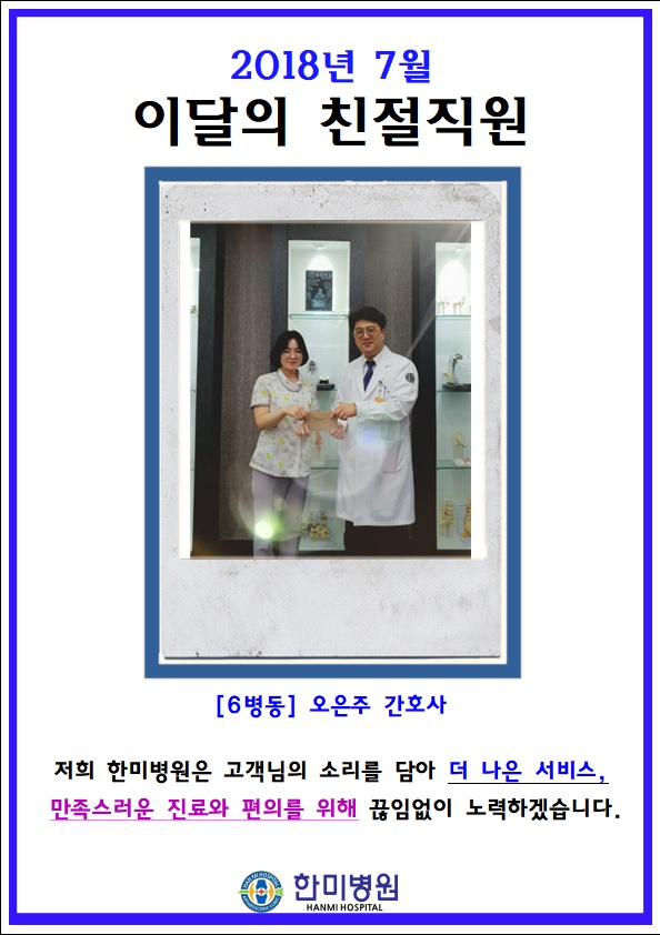 7월 한미병원 친절직원 선정(6병동 오은주 간호사)