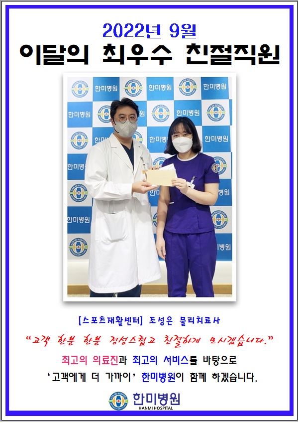 9월 한미병원 친절직원 선정(스포츠재활센터 조성은 물리치료사)